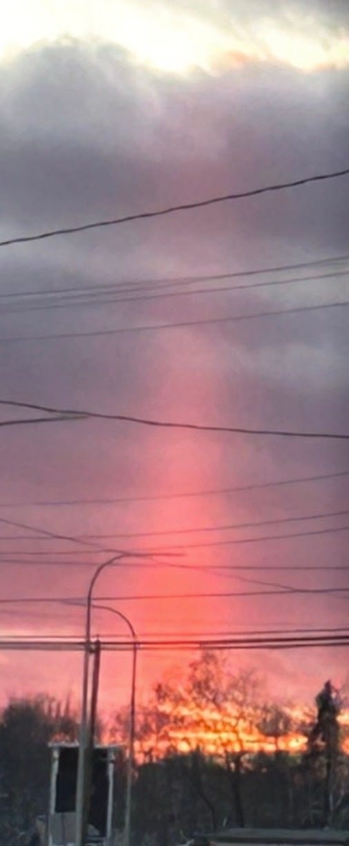 I took this picture today. When I first looked at this incredible unique stream of light from the sun set I immediately felt a rush of energy move down my body. Like a thud if that makes any sense. I had spent the entire day feeling this sharp fire energy right through me. It was like a massive layer of a strategy dissolved and down it came clearing out space where space was yearning to be had. Old information moved. Lots of very clear boundaries around all kinds of stuff. Showing up more authentic in that with a clarity of being in a process of emergence….of a download if you will. NEW coming in and fire moving old. So when I saw this I just knew. I knew this was a massive metaphor of Self. It was being reflected back to me in this beautiful sunset that literally was a jolt to my nervous system when I saw it. It was as though the universe reminded me that I truly create it all.